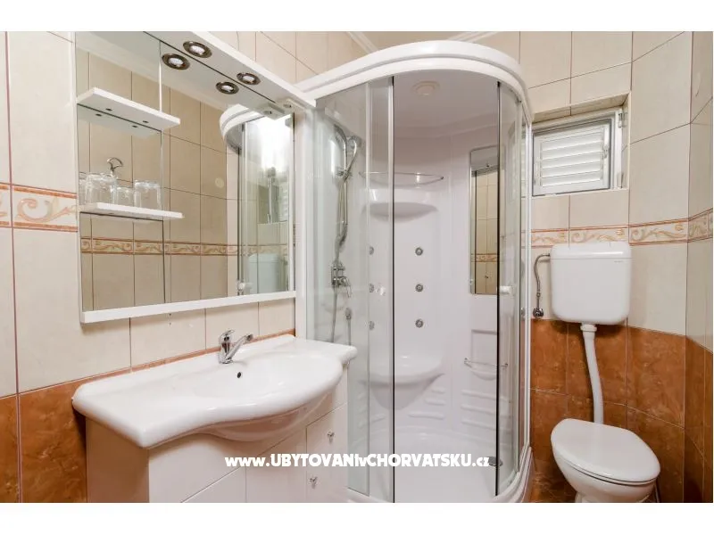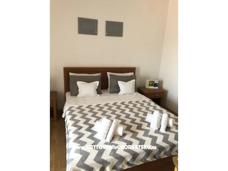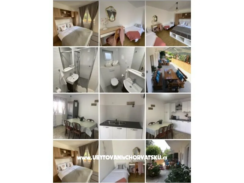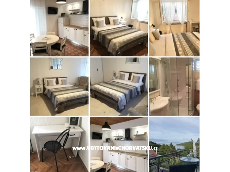 Hostům jsou k dispozici 3 prostranné apartmány a pokoje: 1 Apartmá – 50 m2 (3+2 postele) se skládá z třilůžkové ložnice a ze 1 dvojlůžkového pokoje, kuchyňského přístavku s plným vybavením, koupelny, balkónu s pohledem na moře, tv-sat, klimatizace, parkoviště. 2 Apartmá – 50 m2 (3+2 postele) se skládá z třilůžkové ložnice a z obývacího pokoje s možností 2 lůžek. Je zde...