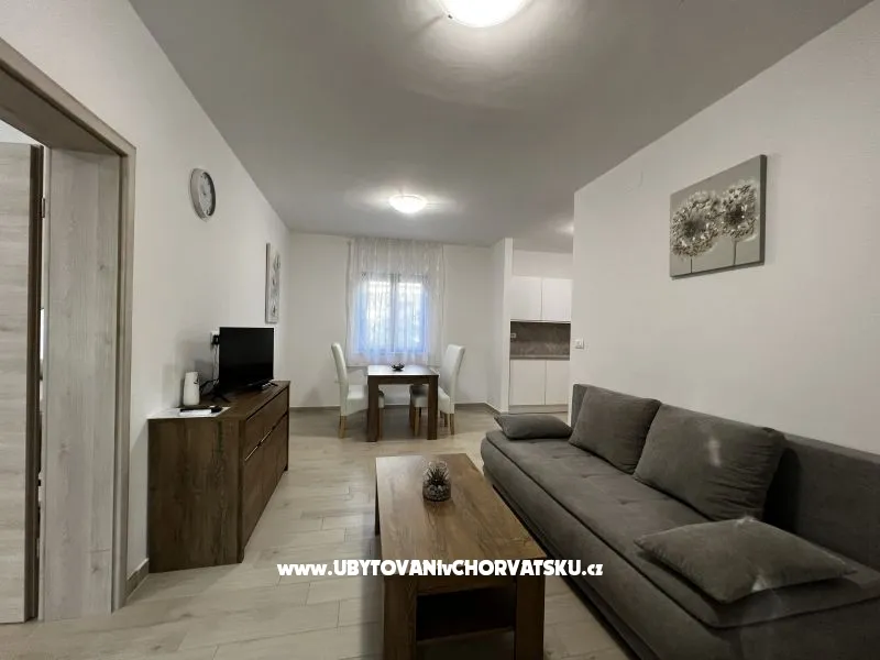 Dům se 3 apartmány je k pronájmu v Medulinu. Dva apartmány mohou ubytovat až 4 osoby, které se nacházejí v přízemí, a jeden apartmán může ubytovat až 6 osob, který se nachází v prvním patře. Apartmány byly zrekonstruovány v roce 2022. K domu náleží dvůr o velikosti 500 m2, který mohou využívat všichni hosté. Na dvoře je zázemí pro děti. Apartmány se nacházejí 200 m od promenády a 500 m od pláže.