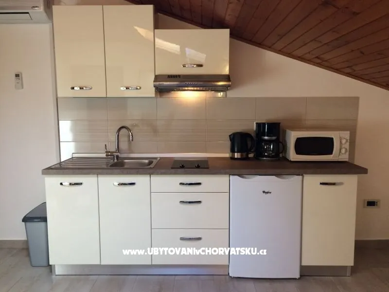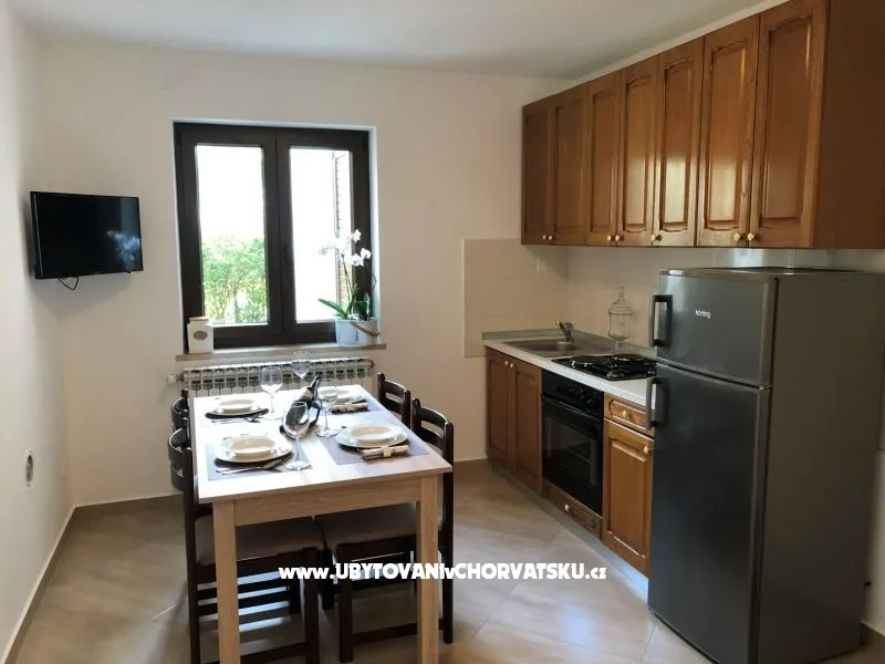 Apartman A3. Skládá se z jedné ložnice (s manželskou postelí), obivaoca pokoja - kuchyni s luzkom pro jednu osoby , koupelny, balkon , TVSAT, Wi-Fi, klimatizace - gratis Grill u zahradi