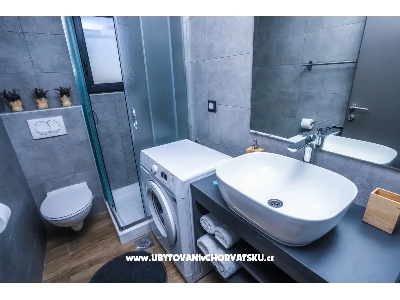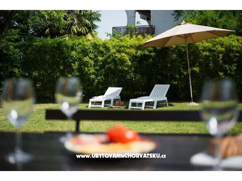 Byt se skládá ze dvou ložnic, koupelny, kuchyně, obývacího pokoje a velké kryté terasy. Byt je vybaven pračkou, myčkou, troubou, WI-FI, klimatizací, TV-SAT.