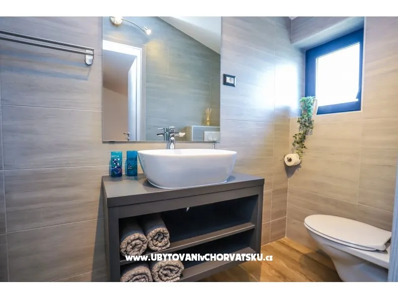 Byt s výhledem na moře se skládá ze čtyř ložnic, tří koupelen, kuchyně, obývacího pokoje. Byt je vybaven pračkou, myčkou, troubou, WI-FI, klimatizací, TV-SAT.