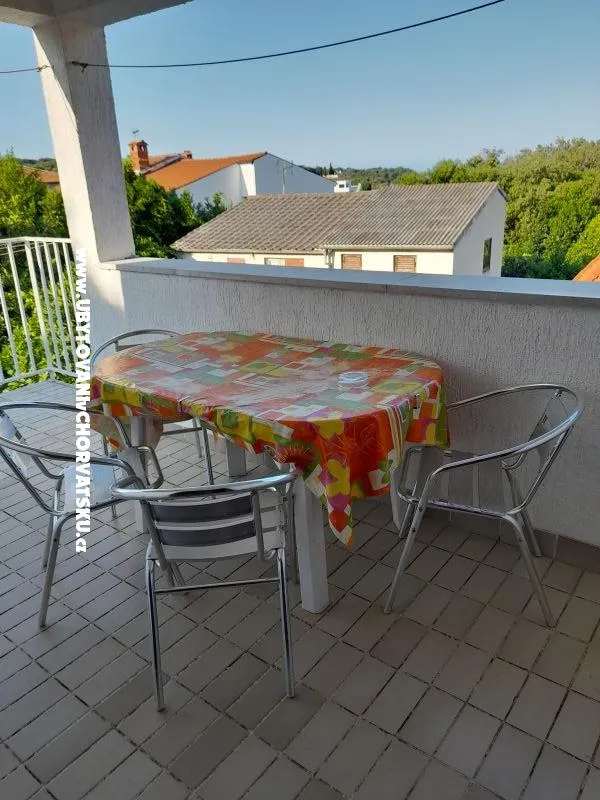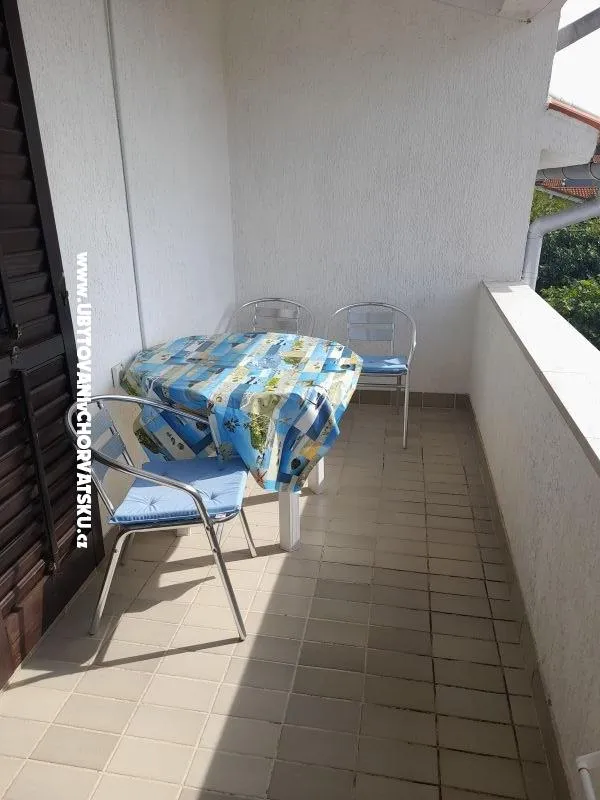 Byt je studio, první patro, má veškeré vybavení a wi-fi a balkon. Není zde výhled na moře. Velký pokoj s jídelnou a malou kuchyní, koupelna, balkon. Soukromé parkoviště zdarma.