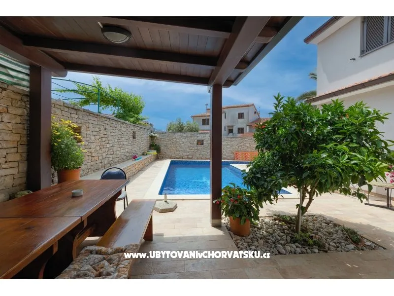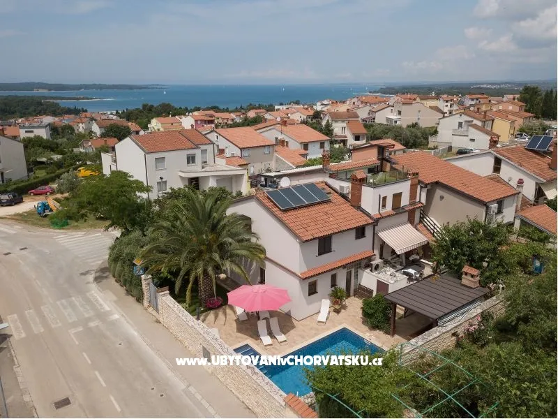 Apartmány se nacházejí na předměstí Puly, naproti ostrovům Brijuni. Apartmány jsou plně zařízené, s kuchyní, klimatizací, TV-SAT, terasou, parkovištěm, vyhřívaným bazénem, ??grilem, bezdrátovým internetem, pračkou .... Pláž Puntižela je vzdálená 750 metrů a nabízí spoustu barů, restaurací a sportovních aktivit