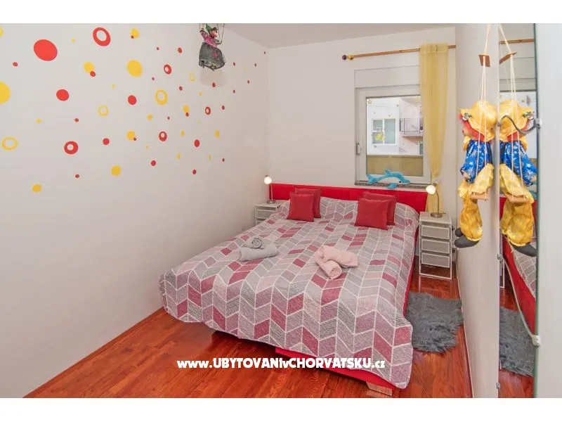 Apartmán Malu se nachází v klidné lokalitě. Skládá se z obývacího pokoje, jídelny a kuchyně v přízemí a 2 ložnic a koupelny na patře.