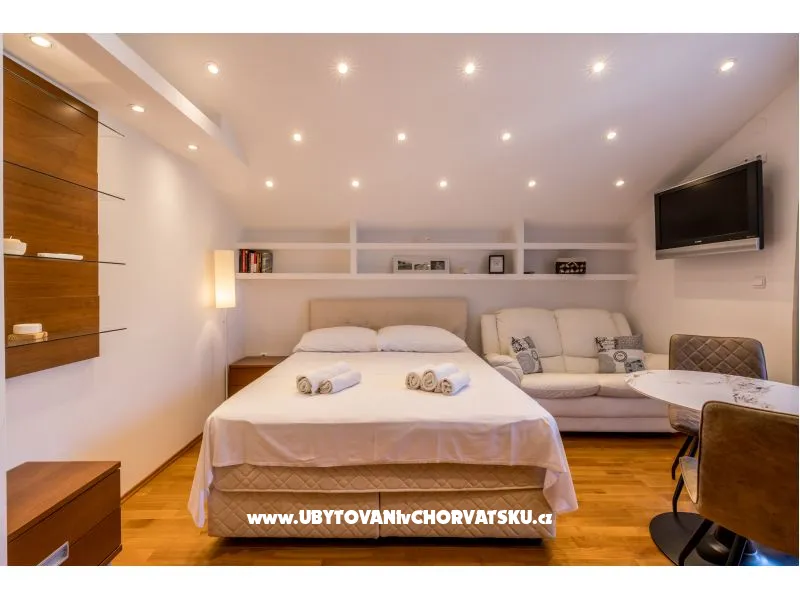 Bolotel ubytování – dva útulné apartmány v klidné části Bolu Vítejte v Bolotel, moderně zařízených jednotkách ideálních pro páry, rodiny nebo přátele, nacházející se v klidné části Bolu na ostrově Brač. K dispozici jsou vám dva apartmány: Studio apartmán – útulný a nově zrekonstruovaný prostor pro dvě osoby s vlastním balkonem s výhledem na hory a částečným výhledem na moře. K dispozici je klimatizace, kuchyň, koupelna a soukromé parkování. Nachází se jen 50 metrů od obchodu a 10–15 minut pěšky od centra, pláží a promenády. Větší apartmán s galerií – prostorný apartmán ideální pro dvě dospělé osoby a dvě děti ve věku od 12 do 17 let. Má samostatnou ložnici, galerii (mezzanin) s přistýlkami, velký balkon s výhledem na moře, dvě klimatizace, plně vybavenou kuchyň s troubou, koupelnu s pračkou a soukromé parkování. Obě ubytovací jednotky nabízejí bezplatné Wi-Fi. Osobně vás přivítáme a postaráme se, aby váš pobyt byl pohodlný a bezstarostný.