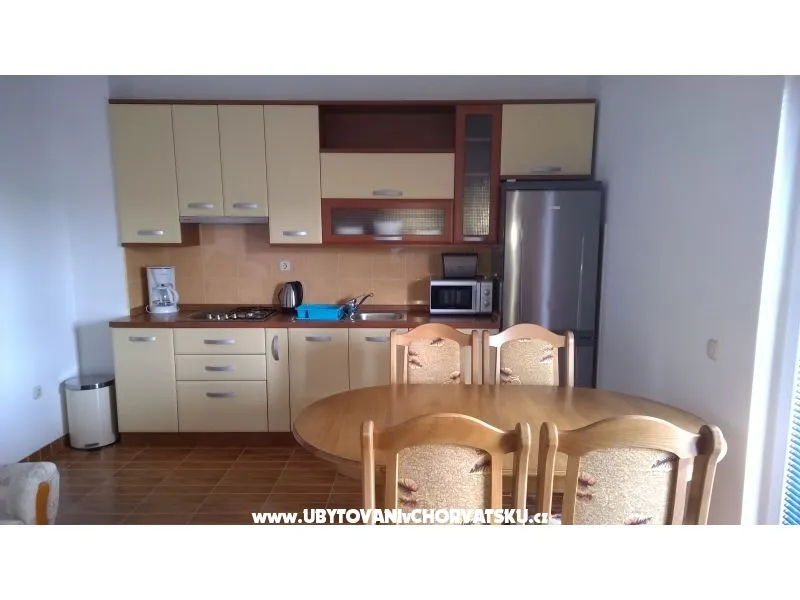 Nově postavený dvoupatrový dům s vysokým podkrovím, kryté parkoviště. Obklopen borovým lesem, velká terasa 40m2 s krásným výhledem na moře a město. Upravená betonová pláž 200m od domu, upravená oblázková pláž u vjezdu do města vzdálená 800m.
