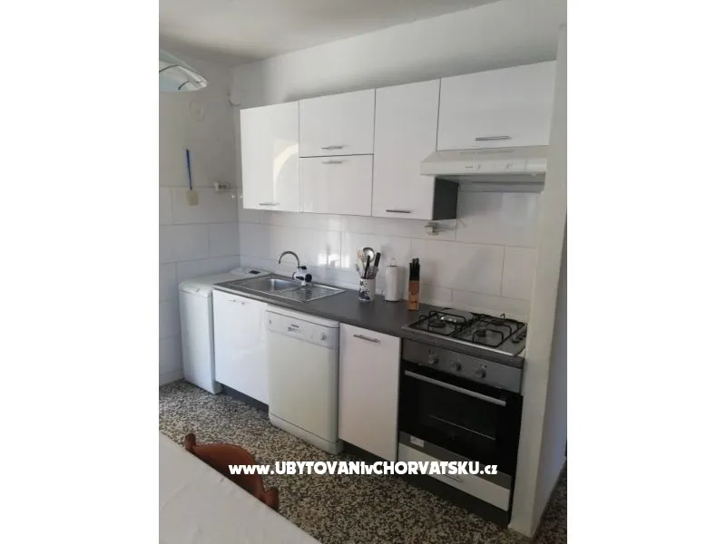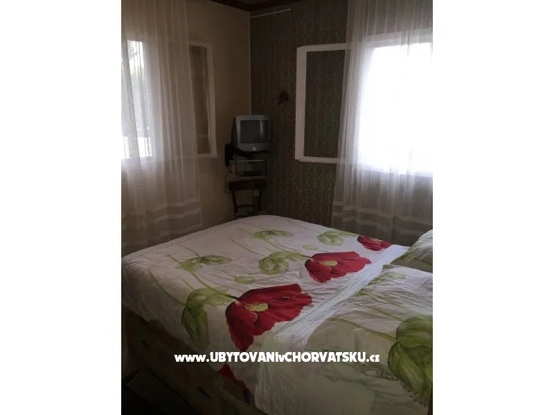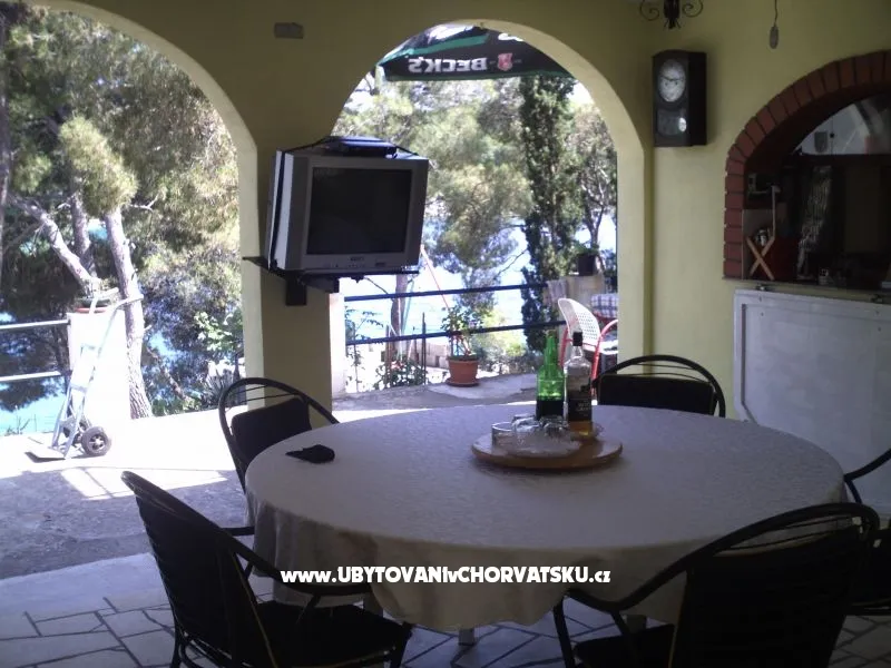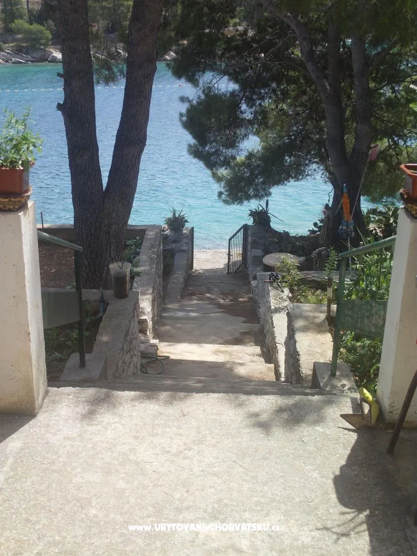 Apartmán se nachází v klidné zátoce u moře. Apartmán má tri dvoulůžkové ložnice, kuchyň je vybavena vším, co potřebujete. Když vyjdete z kuchyně je krytá oblast, kde je stůl, židle, TV se satelitním příjmem, a v blízkosti gril. Po po schodech dolů projdete zahradou vedle dětské houpačky, venkovní sprchy a dostanete se ke dveřím, která nás oddělují od pláže. Na pláži je slunečník se stolem a židlemi a lehátky. Hned vedle pláže je možné kotvit malý člun. Jako doplněk můžete využít myčku a pračku. Každý pokoj má TV, v koupelně je vysoušeč vlasů a před domem jsou terasy 25 m2 se stolem a židlemi k použití. To vše je zahrnuto v ceně, stejně jako klimatizace, pobytová taxa, parkoviště, internet. Můžete pozvat (sdělte nám prosím předem) své přátele na posezení nebo stravování v apartmánu po dobu 1-2 hodin a na pláži déle. Přihlášení do apartmánu po 14 hodin, odjezd do 9:00 Příplatek 10 EUR pro více než 4 dospělé v apartmánu. Apartmán je pro 4 dospělé a 2 děti.