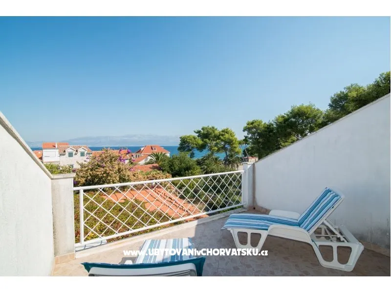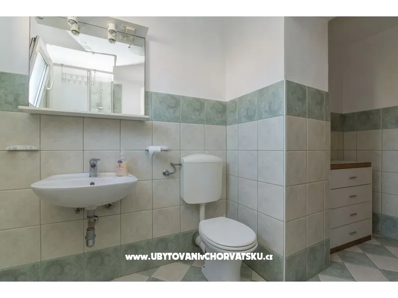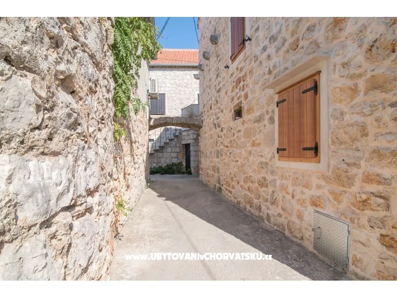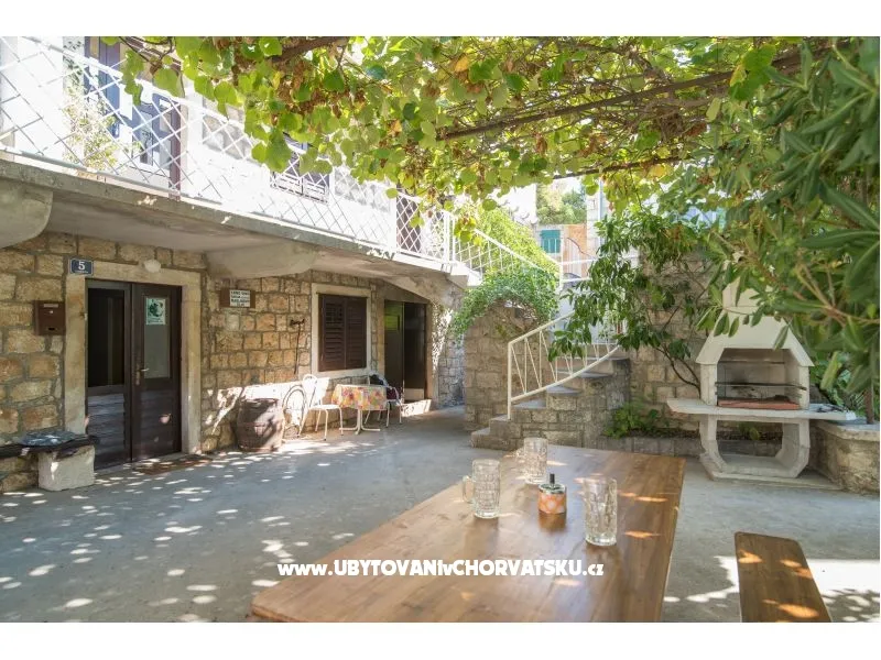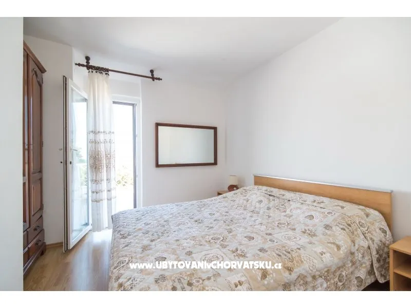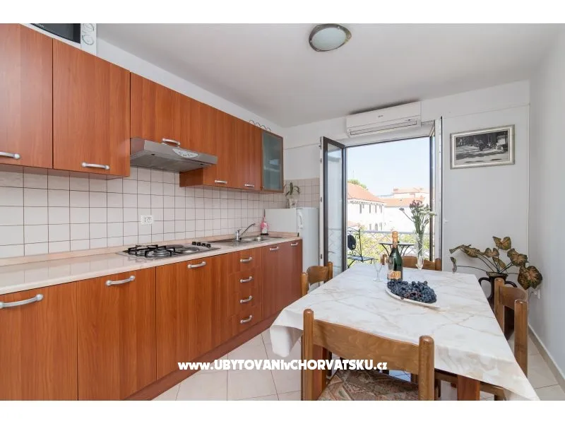 V samém centru města, ve velkém, kamenném, rodinném domě nedaleko moře se nachází naše apartmány obklopené zelení. Každý apartmán má cca 80m2 a jsou tam dvě ložnice, plně vybavená kuchyně s jídelnou, prostorný obývací pokoj a koupelna se sprchovým koutem. Všechny apartmány jsou klimatizované, vybavené satelitem a bezplatným wi-fi připojením.