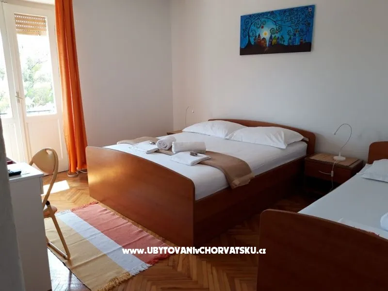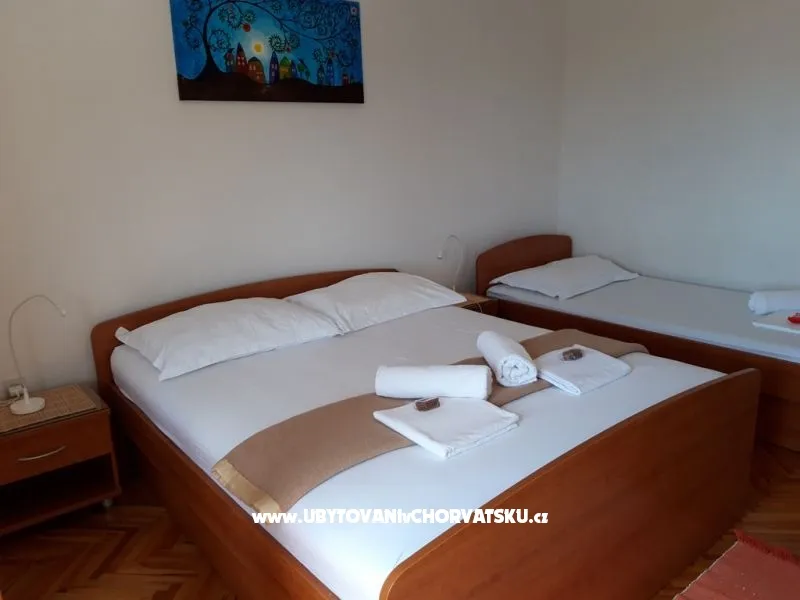 Dum k pronajmutí, Chorvatsko Brela ubytování pokoj, Vila Sodan, leží 50 m od krásné oblázkové pláže (videt na obrázku), kterou v krištálove jasné Jaderského more. Domu Vila Sodan Chorvatsko Brela ubytování má 5 pokoju, prostorný obývací pokoj 25 m?, kuchynky na každém 16 m? a terasou o 40 m?. Pokoje jsou dvoulužkové, avšak muže se vkládají další cots snadno prevést do trí lužko...