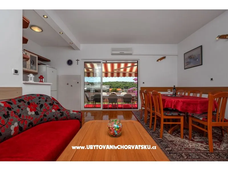 Dům má zahradu s ovocem a zeleninou, gril a také vlastní parkoviště. Ap. 8 + 2 --- nabízíme velmi komfortní ubytování pro velké rodiny nebo skupiny. 140 m2 apartmán nabízí následující: 4 ložnice (klimatizované) se 4 koupelnami + velká kuchyně a obývací pokoj, 3 balkony. Nachází se v blízkosti centra města (2 minuty chůze), kde je také nejbližší pláž. Banka, obchody s potravinami,...