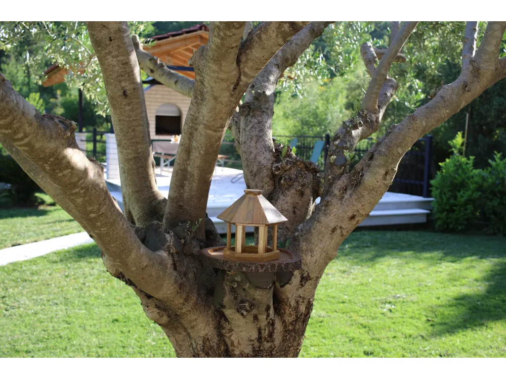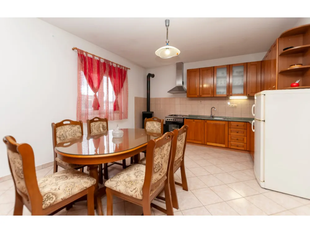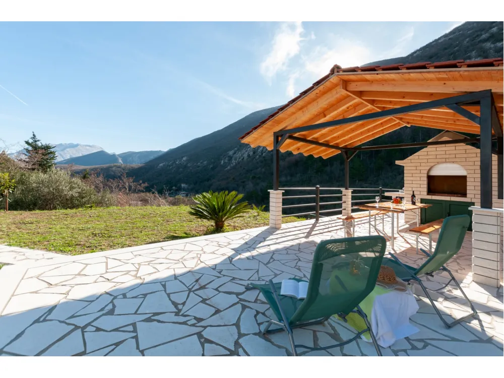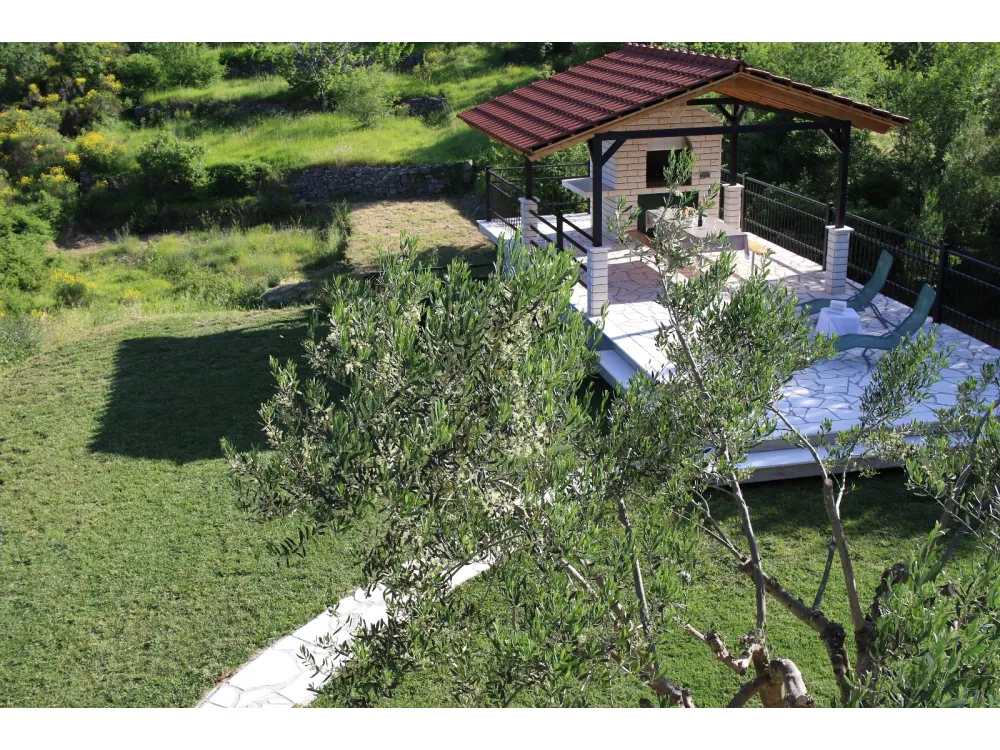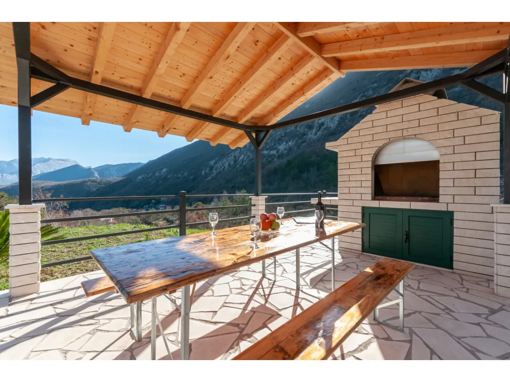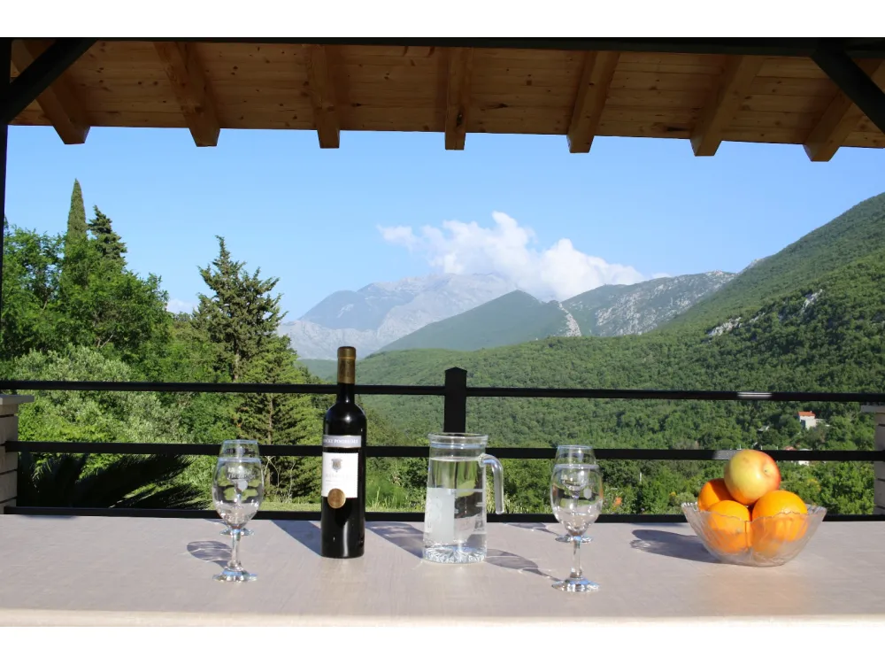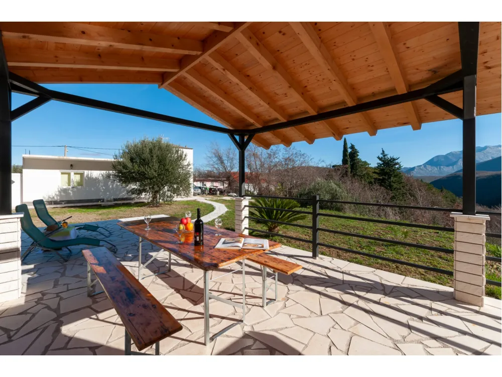 Dům se nachází v krásné přírodě s výhledem na okolní kopce a hory. Má jednu ložnici s manželskou postelí, dále dvě oddělené místnosti s jednolůžky, koupelnu se sprchovým koutem, kuchyň a velký obývací pokoj s rozkládací pohovkou. Velká krytá terasa se sto