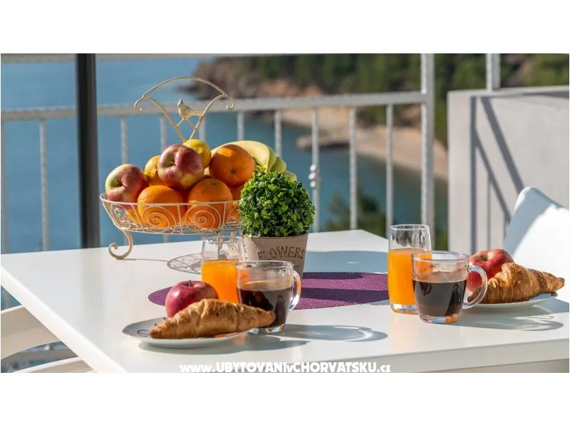 Apartmány Sonata se skládají ze 4 apartmánů. Apartmán OPERA má 3 ložnice, 3 koupelny, velkou kuchyň / obývací pokoj a velkou terasu 40 m2 s výhledem na moře. Apartmán SONATA má 3 ložnice, 3 koupelny, kuchyň / obývací pokoj, balkon a terasu s výhledem na moře. Apartmán RONDO má 2 ložnice a 2 koupelny, kuchyň, obývací pokoj, terasu a balkon s výhledem na moře. Apartmán ARIA má 2 ložnice a 2 koupelny, obývací pokoj a kuchyň a 2 menší balkony s výhledem na moře. Apartmány mají velkou kapacitu a mohou ubytovat 2 až 3 rodiny. Ke každému bytu náleží minimálně 2 parkovací stání. V ceně je WIFI, parkování a klimatizace. Dům se nachází v klidné okrajové části Omiše, 4 km od centra. V blízkosti jsou supermarkety a restaurace. (5 min chůze).
