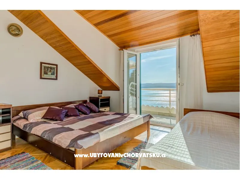 POLOHA: apartmány s nádherným výhledem a výhodnou polohou nad plážemi letoviska Mimice. Dům je na klidném místě pod magistrálou. Centrum letoviska i pláže jsou přístupné po schodišti (130 schodů), které ústí přímo u moře nebo po strmější cestě, která vede do centra Mimice. VYBAVENÍ: klimatizace, terasa s grilem, bezplatný parking nad domem, wi-fi. UBYTOVÁNÍ: Apartmán A6+2 (č. 1) – prostorný byt o rozloze 113 m2 s vlastním vchodem se nachází v podkroví domu a nabízí z terasy nádherný výhled na moře, 3 oddělené ložnice (2x pro 3 osoby a 1x pro 2 osoby), kde každá ložnice má vlastní balkón s výhledem na moře, velký obývací pokoj s terasou a s nádherným výhledem na moře, klimatizace (5,- EUR/den), jídelní stůl, sedací souprava, android TV. Apartmán má 2 koupelny s WC a kompletně vybavenou kuchyňku s velkou chladničkou a mrazákem. Doporučujeme pro velké rodiny nebo přátele, kteří chtějí strávit společnou dovolenou. Apartmán A2+1 (č. 2) – apartmán v 1. patře s klimatizací (5,- EUR/den) a přímým výhledem na moře, ložnice s manželským lůžkem a lůžkem pro 3. osobu, oddělená kuchyňka s chladničkou, koupelna s vanou a WC, balkón s posezením a nádherným výhledem na moře. Studio S2 (č.3 a 5) – studio v 1. patře s manželským lůžkem a klimatizací (5,- EUR/den), koupelna se sprchou, WC, kuchyňský koutek s chladničkou, balkón s čelním výhledem na moře. Studio S2+1 (č. 4) - studio v 1. patře s manželským lůžkem a lůžkem pro 3. osobu, klimatizace (5,- EUR/den), koupelna se sprchou, WC, balkón, kuchyňský koutek s chladničkou je umístěn na boční terase s částečným výhledem na moře. PLÁŽ: k dispozici jsou 2 nádherné oblázkové pláže s pozvolným vstupem do moře. Přímé schodiště od apartmánu ústí u malé oblázkové pláže, další pláže jsou max. do 250m. STRAVOVÁNÍ: vlastní stravování, řada možností se stravovat individuálně v restauracích v okolí. SPORT/ZÁBAVA/NÁKUPY: pošta, obchod s potravinami, pekárna a pizzerie se nachází 300 m od villa Leon. Přímo u obchodu je i autobusová zastávka odkud jezdí linka do Omiše (cca 14 km) nebo na Makarskou riviéru (cca 20 km).