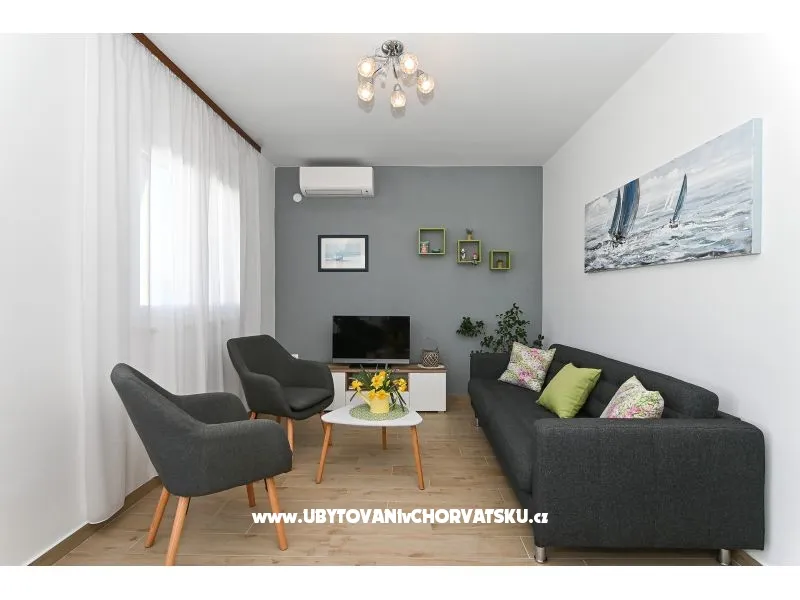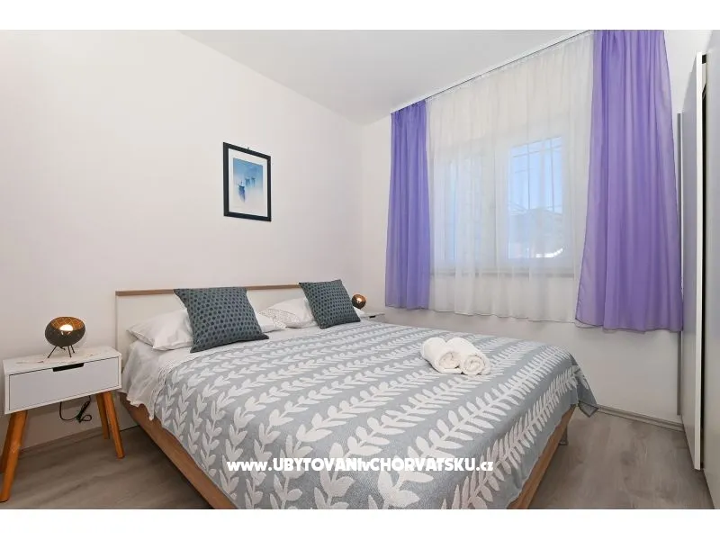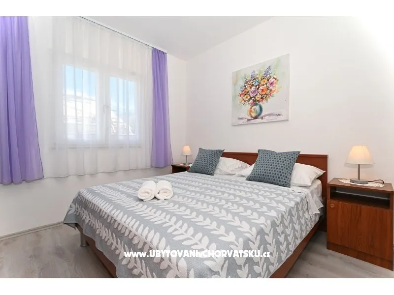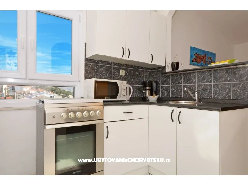 60 m od pláže, druhé patro, výhled na moře, 2 terasy, 2 ložnice, klimatizace, satelitní TV, wi-fi, venkovní gril, soukromé parkoviště