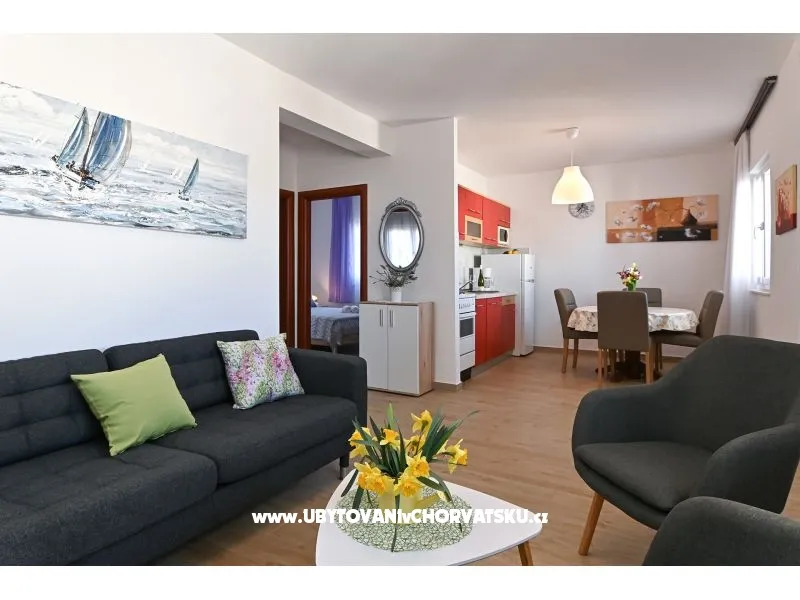 60m od pláže, první patro, výhled na moře, balkon, 2 ložnice, klimatizace, TV SAT, pračka (pro majitele), zdarma, wi-fi, venkovní gril, soukromé parkoviště