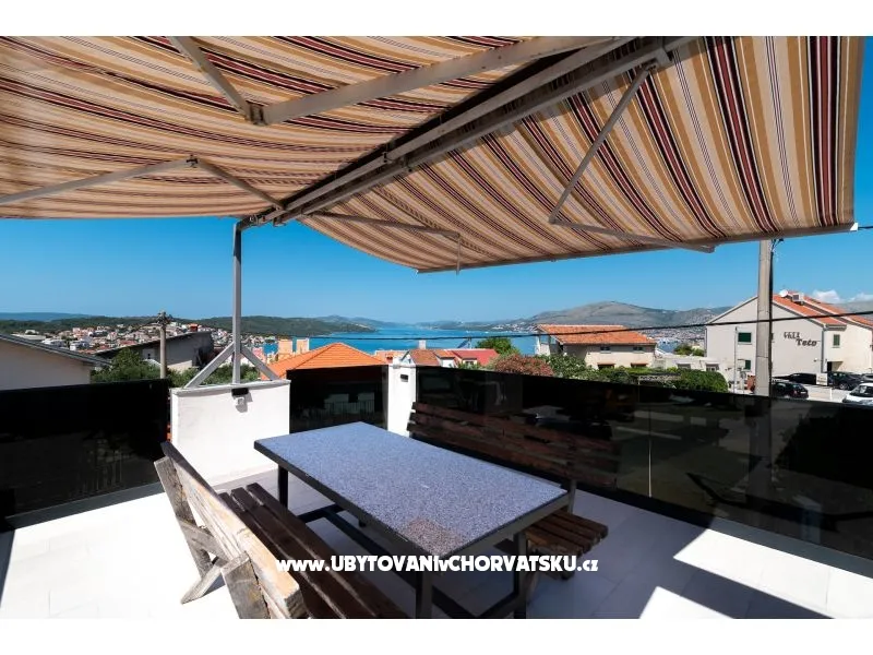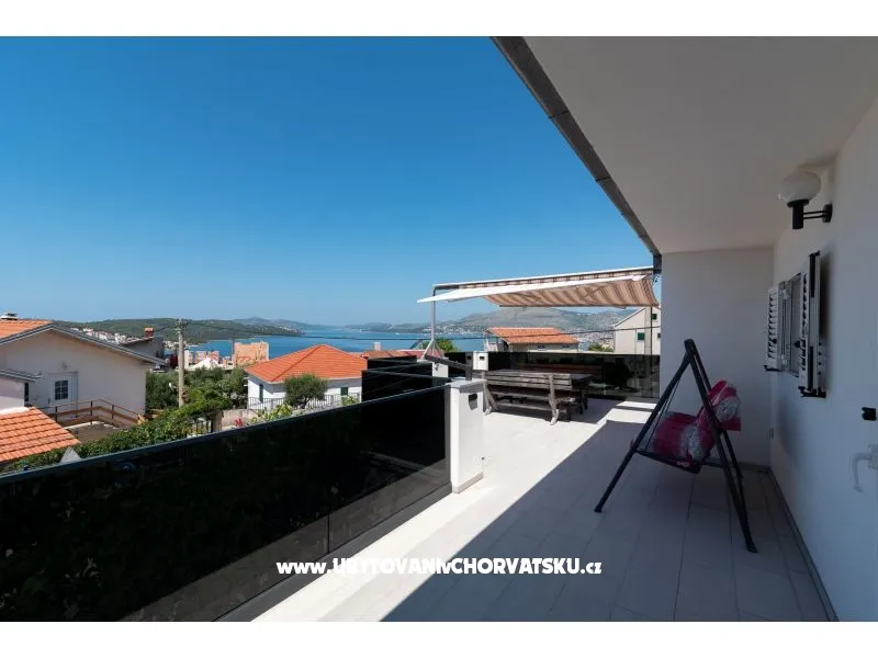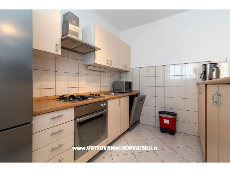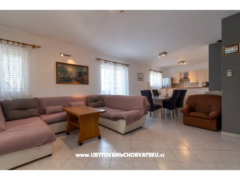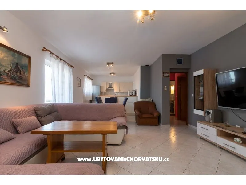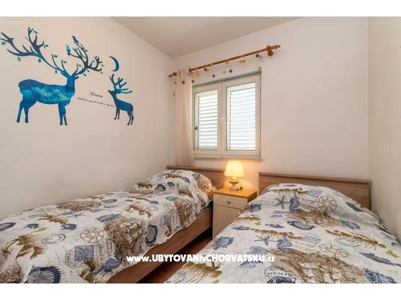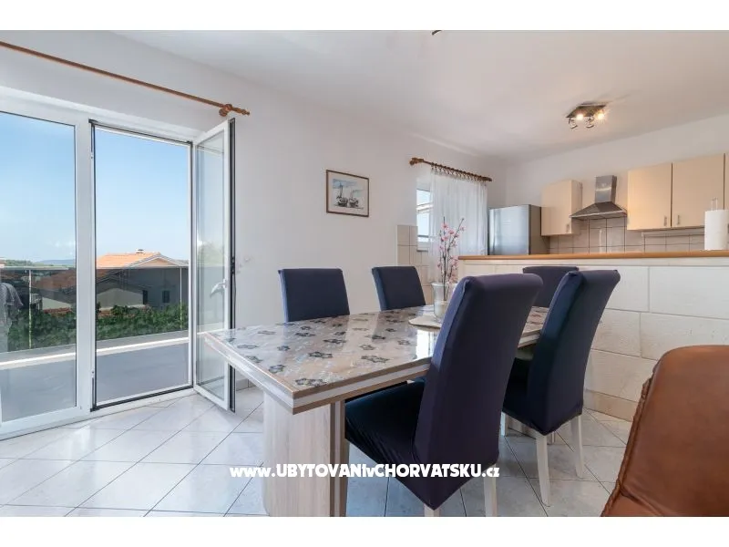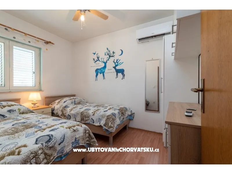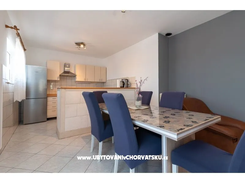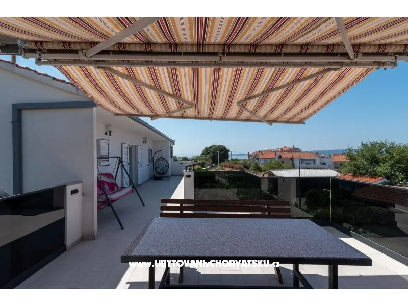 450 m od pláže, druhé patro, výhled na moře, soukromá a společná terasa, gril, 3 ložnice, 1 koupelna a další WC, klimatizace, satelitní TV, pračka, myčka, soukromé parkoviště