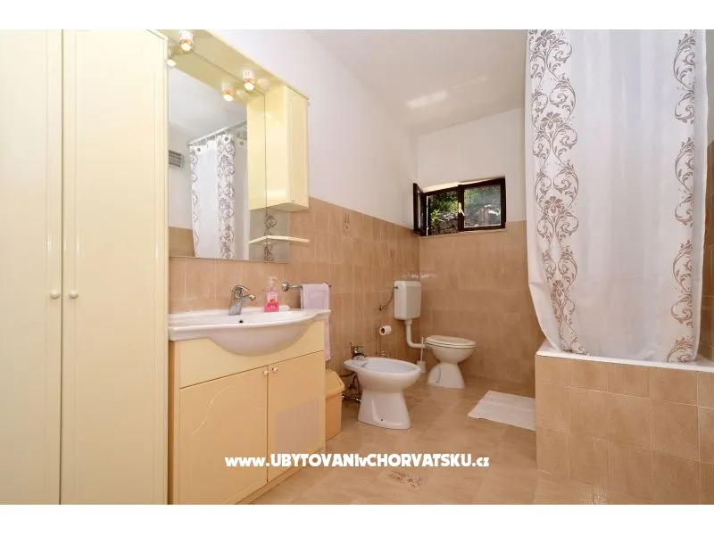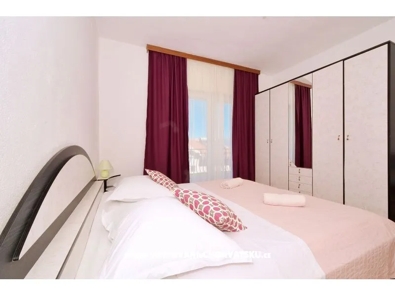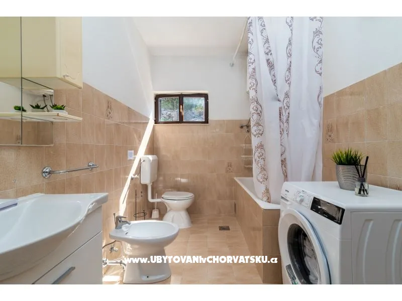 150 m od moře, první patro, terasa 15 + 12 m2, 3 ložnice, internet, klimatizace, pračka (u majitele), gril, soukromé parkoviště, ložní prádlo, ručníky