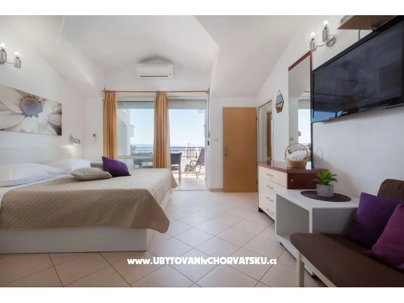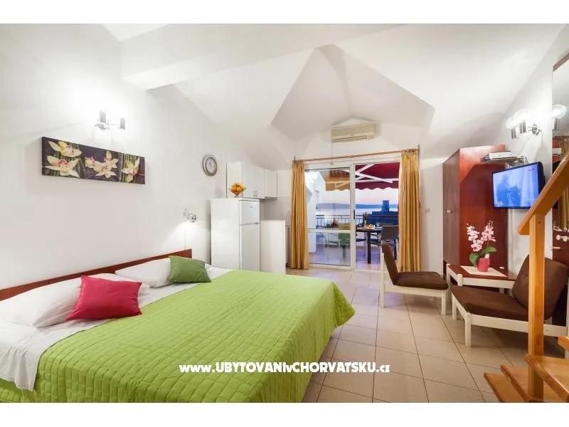 Super pensjonat z apartamentami z widokiem na morze. Ładnie i gustownie urządzone pokoje, dobrze wyposażone i przede wszystkim nowe. apartamenty są stosunkowo duże. W stosunku jakość/cena zdecydowanie jedna z najlepszych opcji w Tucepi. Warto dopłacić za apartamenty 4/5os na ostatnim piętrze z dużymi tarasami i zniewalającym widokiem na Adriatyk. Dojście na plażę zajmuje 5 minut spokojnym spacerem, a po drodze mija się sklepy i restauracje.