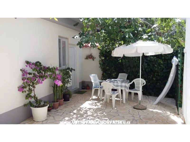 Klimatizovaný apartmán zabírá celý prostor domu, takže hosté mají naprosté pohodlí a soukromí. Mimo apartmán se můžete pobývat v zastřešené části dvora, který slouží i jako terasa.