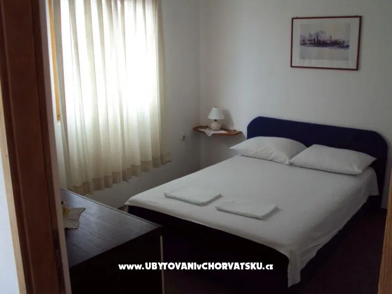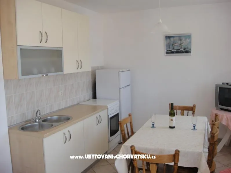 Soukromé ubytování ve 3 apartmánech k pronájmu. 2 apartmány po 40m2 na prvním patře pro 4 osoby a 1 apartmán 60m2 na druhém patře pro 6 osob. Každý apartmán má vlastní balkón / terasu, TV, kuchyň, koupelnu... Parkoviště ve dvoře, grill. Moře a pláž pouze 20m od domu! Wi-Fi internet