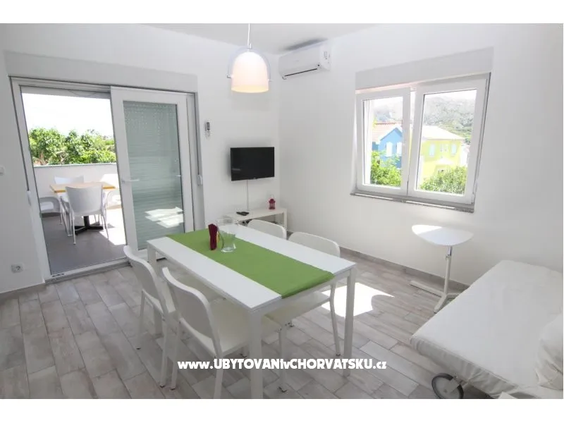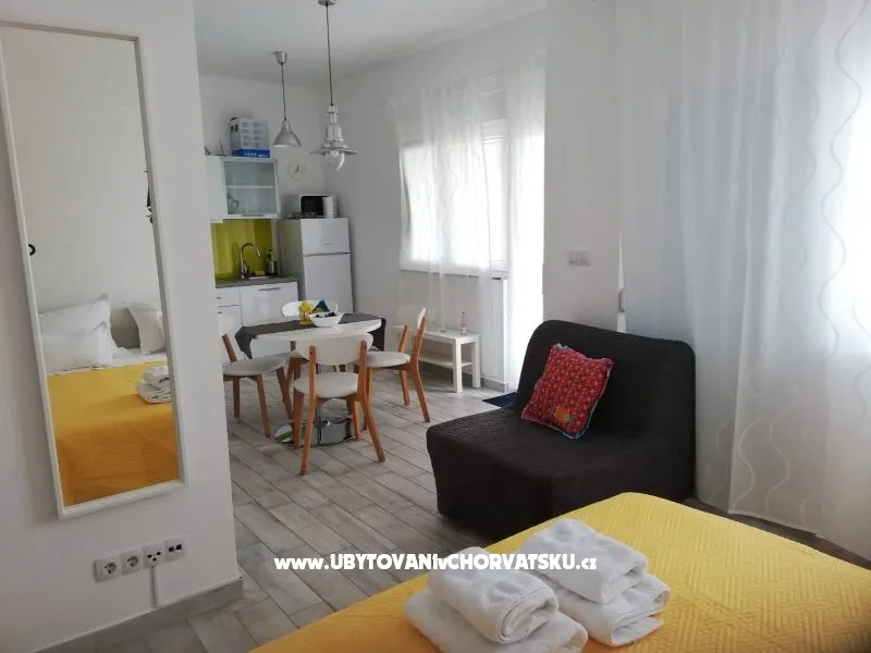 Moderní, stylově zařízený apartmán pro 2-4 osoby nacházející se v klidném prostředí u moře. Apartmán má dvě ložnice, vybavenou kuchyň, koupelnu, balkon, Wi-Fi, klimatizaci a satelitní TV.