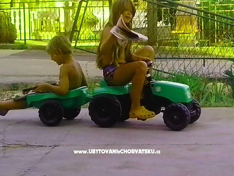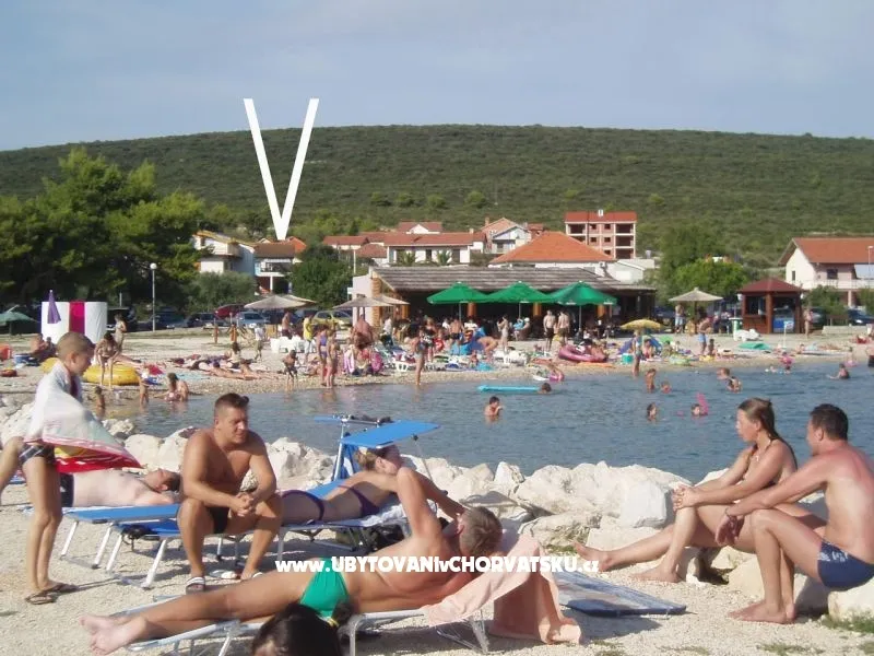 3 ložnice, obývací pokoj, kuchyň, 2 x WC + sprcha, krytá terasa a výhled na moře. Je v patře, se samostatným vchodem. Parkování ve dvoře. Vhodné pro 1/2/3 rodiny. Lehátka na zahradě, bazén pro děti <10 let a gril