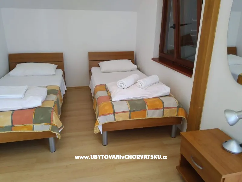 Rodinný dům s malým počtem bytů, zajištěné soukromí, majitelé k dispozici. Pouhých 30 metrů od moře je oblázková pláž s pískem v moři a místo je klidné a ideální pro rodinnou dovolenou. S bezplatným Wi-Fi, klimatizací, parkováním a terasami, je k dispozici také gril na dvoře.