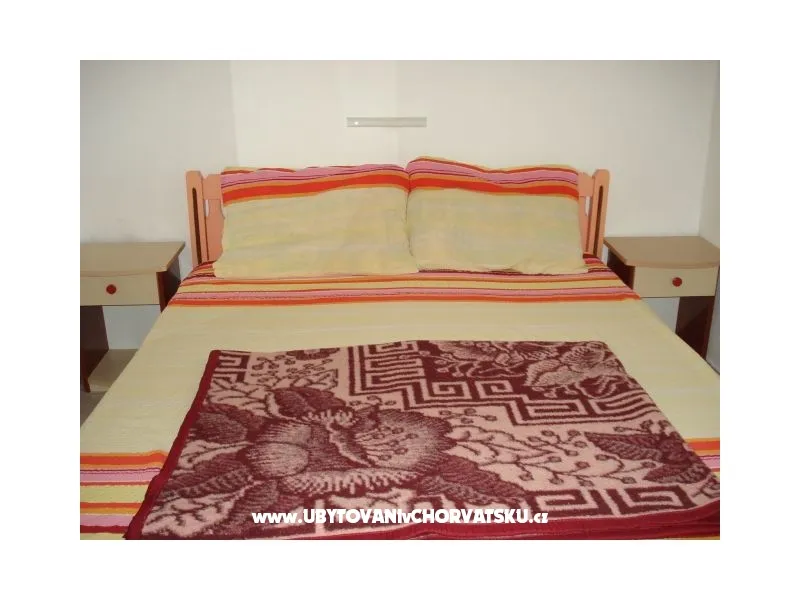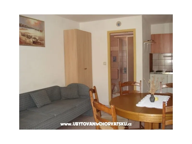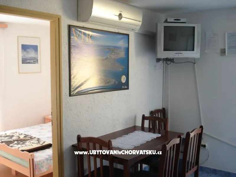 Apartmány "Srnec Haus Vir" se nachází 70 metrů od pláže, apartmány mají 2 ložnice pro celkem 4 osoby, obývací pokoj s kuchyní, koupelnu se sprchovým koutem a terasu nebo balkon. Každý apartmán má samostatný vchod, klimatizací, TV, gril. V ceně není zahrnuta místní pobytová taxe (1€/den/osoba).