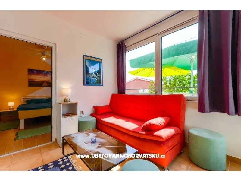 App.2(2+2) pro 4 osoby, nachází se v blízkosti moře a pláže s pískem a štěrkem (cca 120-130m), v rodinném domě (v budově (CARPE DIEM) na klidném a slunném místě! Parkování je před objektem.