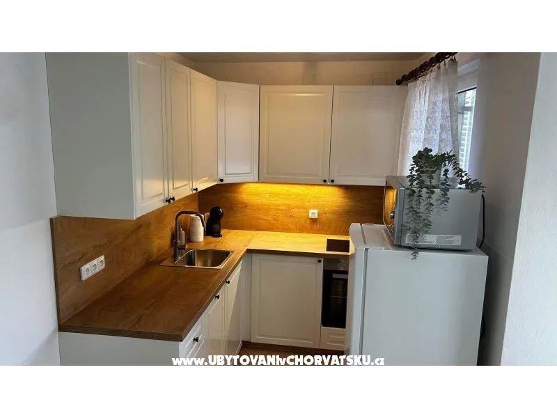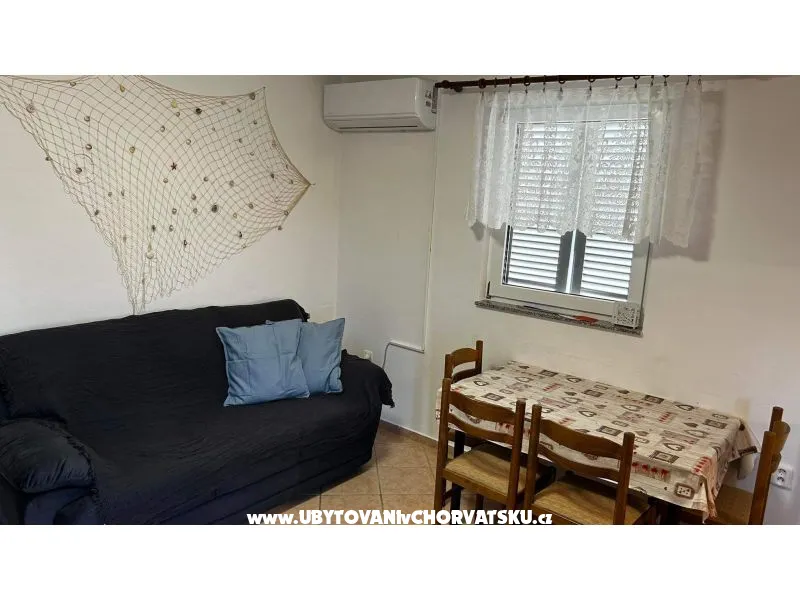 Nabízíme ubytování ve dvou samostatných apartmánech, každý o rozloze 78m˛, jeden v přízemí a jeden v prvním patře. Každý apartmán má 3 ložnice, vybavenou kuchyň a koupelnu. Snažili jsme se pro Vás vytvořit ubytování, ve kterém se budete cítit jako doma. Navštivte nás na ostrově Vir a posuďte sami. Už teď se těšíme na Váš pobyt. Katka & Jakub. Mluvíme česky !