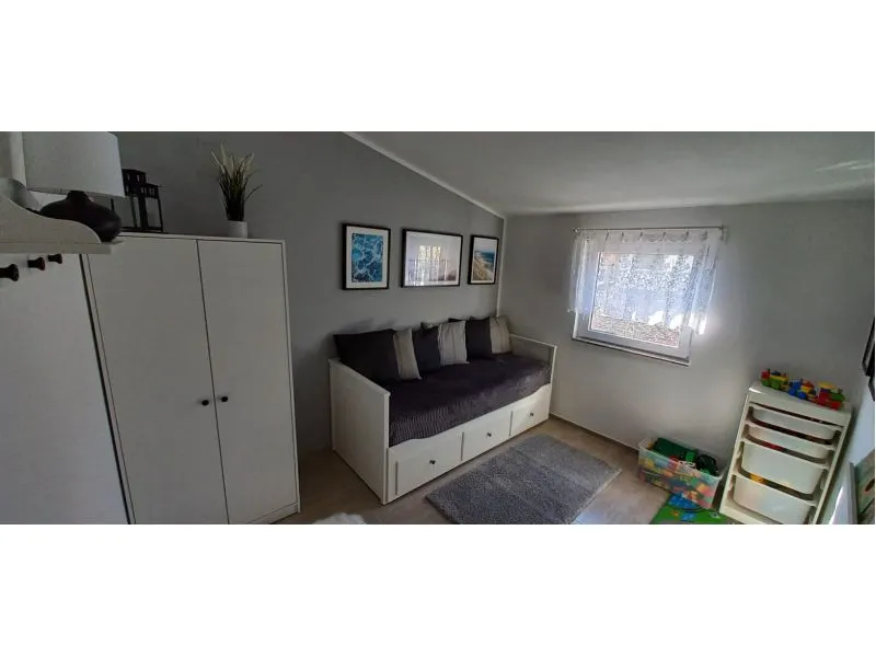 4kk až pro 6 osob, cca 78 m˛, obývací pokoj s pohovkou (TV), 3x ložnice (2x manželská postel, 1x rozkládací pohovka), dětský koutek s hračkami, dětský nábytek, kuchyňský kout ( (lednice, indukční deska, trouba, mikrovlnná trouba, filtr na reverzní osmózu